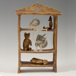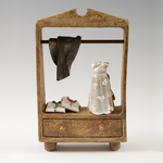 2014viooltje (speld met spin, zilver): 4 x 5 cm; beeldje (steengoed, ongeglazuurd): 22 x 8 cm
