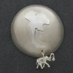 2019Olifant (broche, zilver): 1 x 5 x 7,5 cm ; 18 gr (prijs op aanvraag) Olifant op sokkel (steengoed): 6,0 x 6,5 x 18 cm