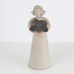 2014clematis (speld met lieveheersbeestje, zilver): 6,5 x 7 cm; beeldje (steengoed, ongeglazuurd): 21 x 8 cm