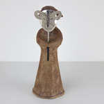 2015primavera (speld, zilver): 4 x 6 cm; beeldje (steengoed, ingewassen met ijzeroxide) : 21 x 7,5 cm